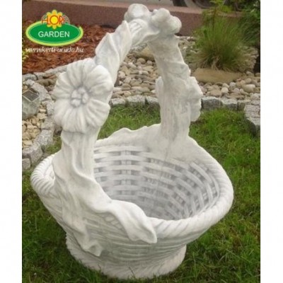 Ajándékkosár virágtartó kaspó alapanyaga kő, ezért időálló és fagyálló. Természetes alapanyagról lévén szó, kiválóan mutat a zöld környezetben. Ha egy ilyen tárgyat vesz ajándékba, az örökre a megajándékozó személyére fog emlékeztetni. Telephelyünkön is megtekintheti, kiválaszthatja a megfelelő darabot. Magyarországon egyedüli termékpalettával rendelkezünk. Győződjön meg termékeink minőségéről és a kedvező árainkról.
