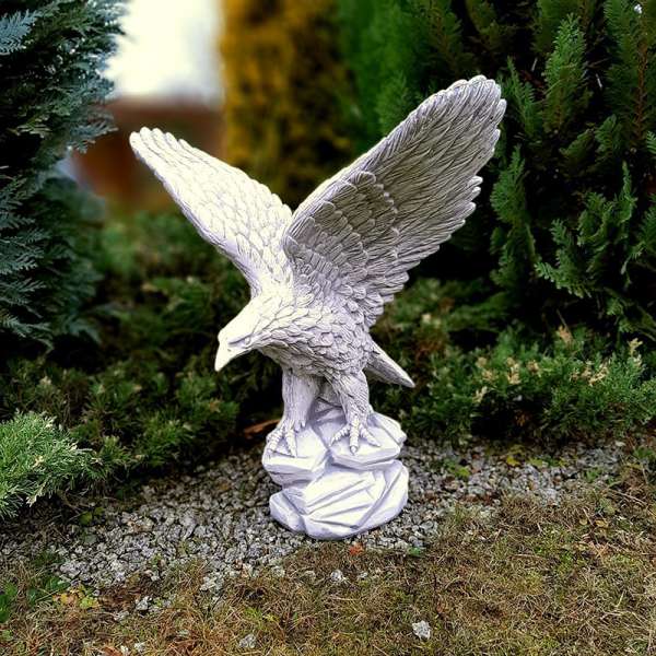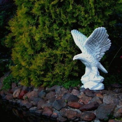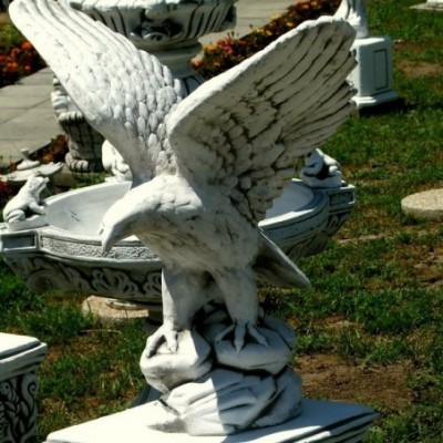 Talapzatra vagy oszlopra helyezve a sas szobor látványos és kiemelkedő alkotás. Kültéri dekorációs termékeink minőségi kő zúzalékból készülnek, az időjárás viszontagságainak teljes mértékben ellenállnak. Mivel fagyállóak, ezért télen is a szabadban hagyhatjuk. Kerti szobrokat, figurákat használhatja a kertje hangulatának fokozására, legyen az hóbortos, klasszikusan elegáns vagy vicces, de ezeknek tükrözniük kell a házigazda ízlését. A szobor vagy dísz felhívja a látogatók figyelmét, ezért az elhelyezés fontos.